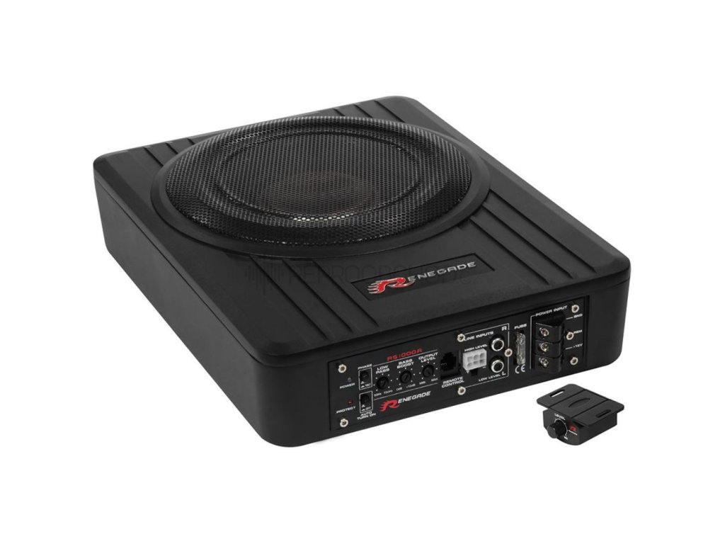 Aktivní subwoofer Renegade RS1000A je kompaktní basové řešení, které se snadno vejde i do stísněných prostorů – například pod sedačku nebo mezi sedačky dodávky. Přesto dokáže výrazně posílit basovou složku hudby a dodat vašemu audiosystému dynamiku. Díky vestavěnému high/low adaptéru s funkcí automatického zapnutí je instalace rychlá a jednoduchá – stačí připojit k autorádiu a napájení.