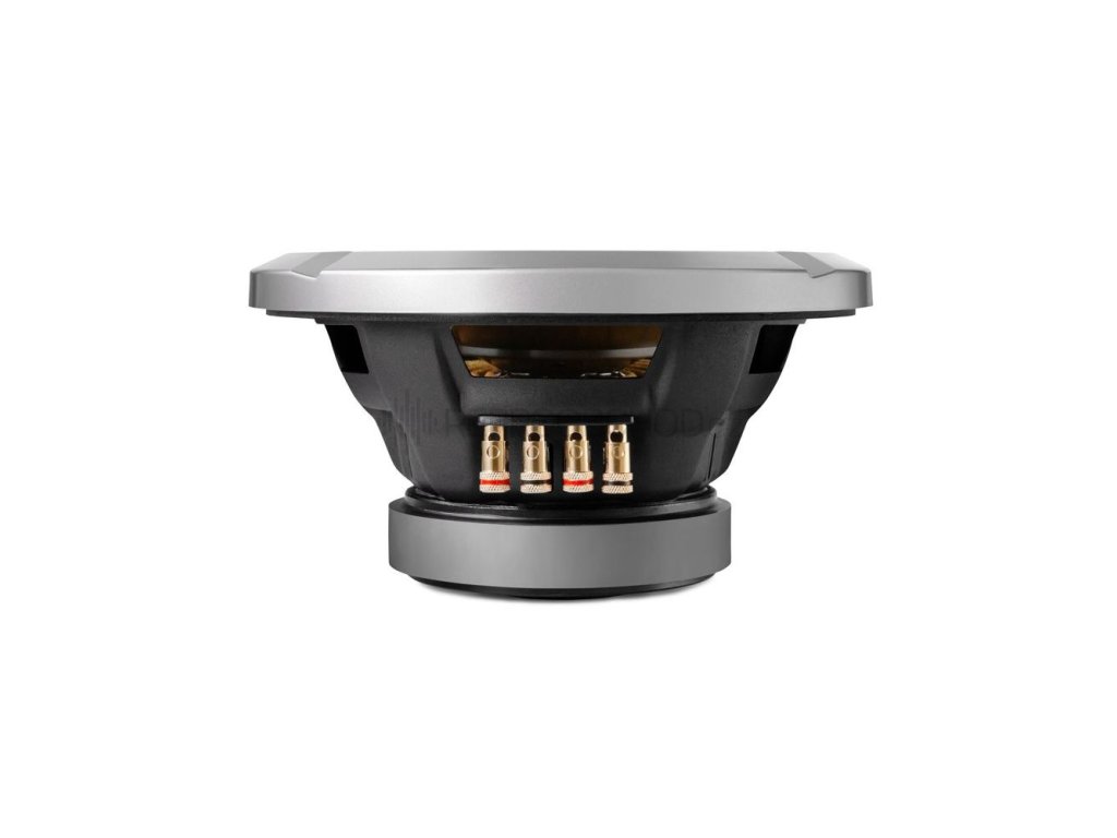 Membrána z uhlíkových vláken a polypropylenu je lehká a pevná zároveň, což zajišťuje přesnou a čistou reprodukci nízkých frekvencí. Gumový HAMR závěs poskytuje maximální výchylku membrány až 13–15 mm, takže subwoofer zvládne výrazné akustické zatížení bez zkreslení. Díky duální kmitací cívce s jednoduchými propojkami lze snadno přepínat konfiguraci impedance a přizpůsobit ji konkrétnímu systému.
