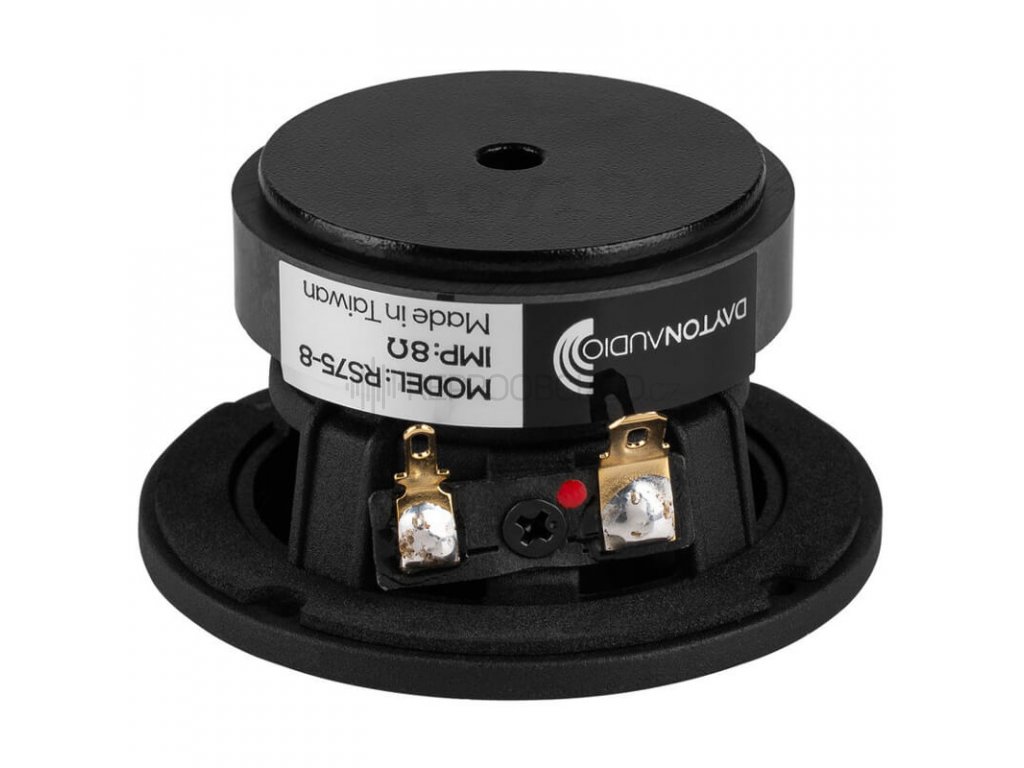 Řada Dayton Audio Reference nastavuje nový standard hodnoty vysoce výkonných reproduktorových měničů. Díky systému motoru s nízkým zkreslením, měděnému kroužku, měděné čepičce a hliníkové fázi dokáže RS75-8 překonat "butikové" reproduktory, které stojí několikanásobek ceny. Jeho vlastnosti s nízkým zkreslením a plynulou odezvou zajišťují výjimečnou čistotu, detaily a dynamiku. Je vybaven černě eloxovanou membránou, odolným litým rámem se 4 otvory, nízkoztrátovým gumovým obalem a zlatými terminály.