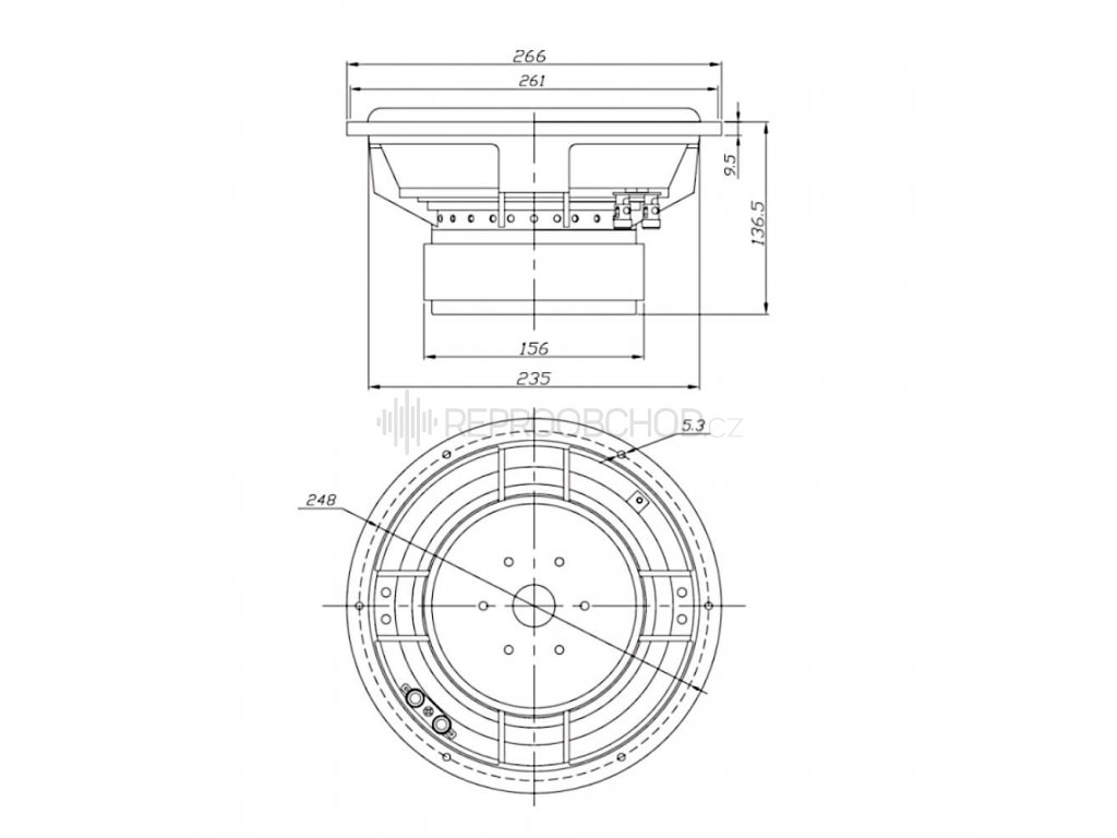 Velikost 10" | 4 Ω | 350 W RMS | 87,8 dB | 22 - 1000 Hz