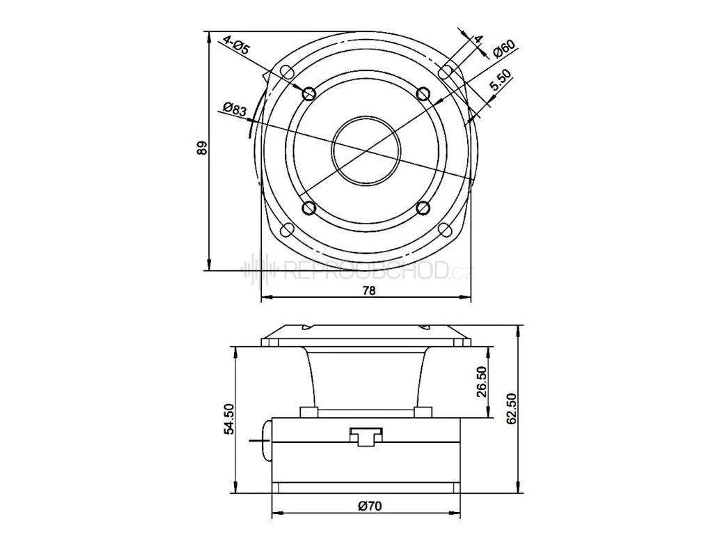 Velikost 1" | 4 Ω | 60 W RMS | 106 dB | 5000 - 20000 Hz