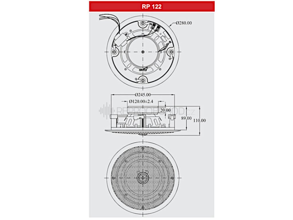 Dexon RP 122 podhledový reproduktor bez transformátoru - plastový, hi-fi, 25 W / 400 Ω, 90 dB, 40 – 20 000 Hz, Ø 280 mm, výhybka