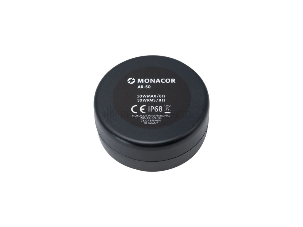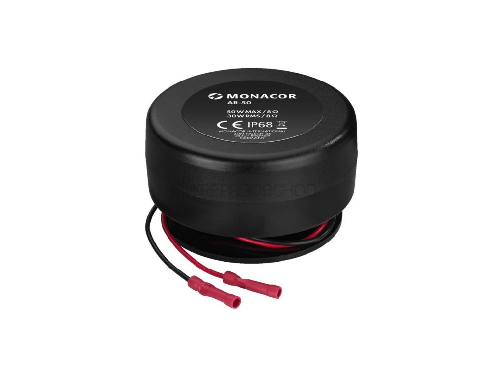 Monacor AR-50 je robustní voděodolný budič určený pro reprodukci hudby a řeči pomocí vibrujících povrchů. V závislosti na zvoleném montážním materiálu dokáže nabídnout velmi široké pásmo a překvapivě vysokou hlasitost, a to bez použití klasického reproduktoru.