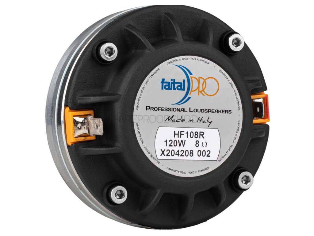 FaitalPRO HF108R je kompaktní kompresní zářič pro 1" hrdlo s vysokou účinností a čistotou výškového pásma. V profesionálních PA systémech i přenosných sestavách se prosadí precizním podáním detailů, výbornou čitelností a nízkými nároky na zesilovač. Neodymový pohon vytváří silné magnetické pole, zatímco reproduktorová membrána z ketonového polymeru a prstencová fázová zátka zajišťují hladkou odezvu a kontrolované směrové vyzařování. Díky velmi kompaktním rozměrům a nízké hmotnosti se snadno integruje do dvoupásmových i třípásmových konstrukcí, kde je potřeba spojit výkon, přesnost a spolehlivost.