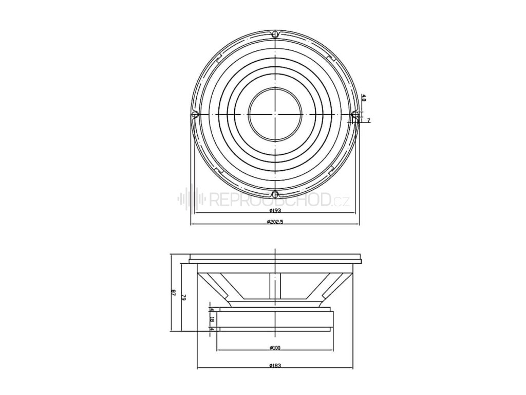 Velikost 8" | 8 Ω | 100 W RMS | 87 dB | 55 - 6000 Hz