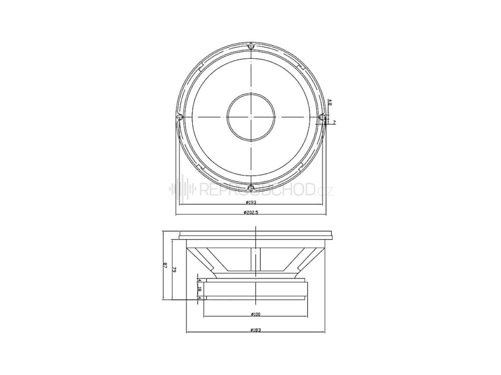 Velikost 8" | 8 Ω | 65 W RMS | 85 dB | 40 - 5000 Hz