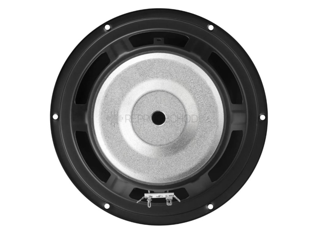 Reproduktorová membrána je vyrobena z lisovaného hliníku, což zajišťuje pevnost, nízké zkreslení a vynikající odezvu na impulsy. Spodní závěs zajišťuje stabilní pohyb membrány a přispívá k plynulému a kontrolovanému přenosu zvuku i při vyšší hlasitosti. Výkonný pohon s odvětrávaným systémem chlazení napomáhá snížení komprese a zajišťuje spolehlivý provoz i při dlouhodobém zatížení.