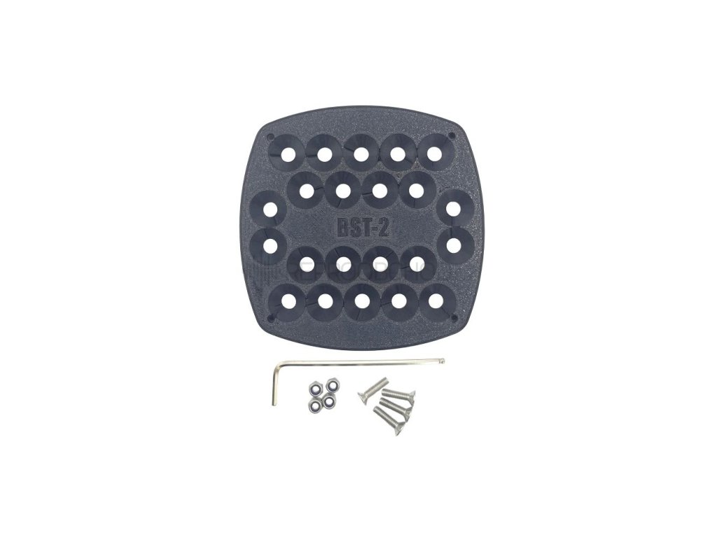 Montážní sada obsahuje kompletní spojovací materiál potřebný pro připevnění BST-2 k držáku. Před samotnou instalací je doporučeno ověřit rozteč otvorů, aby montáž přesně odpovídala zvolenému umístění a použití.