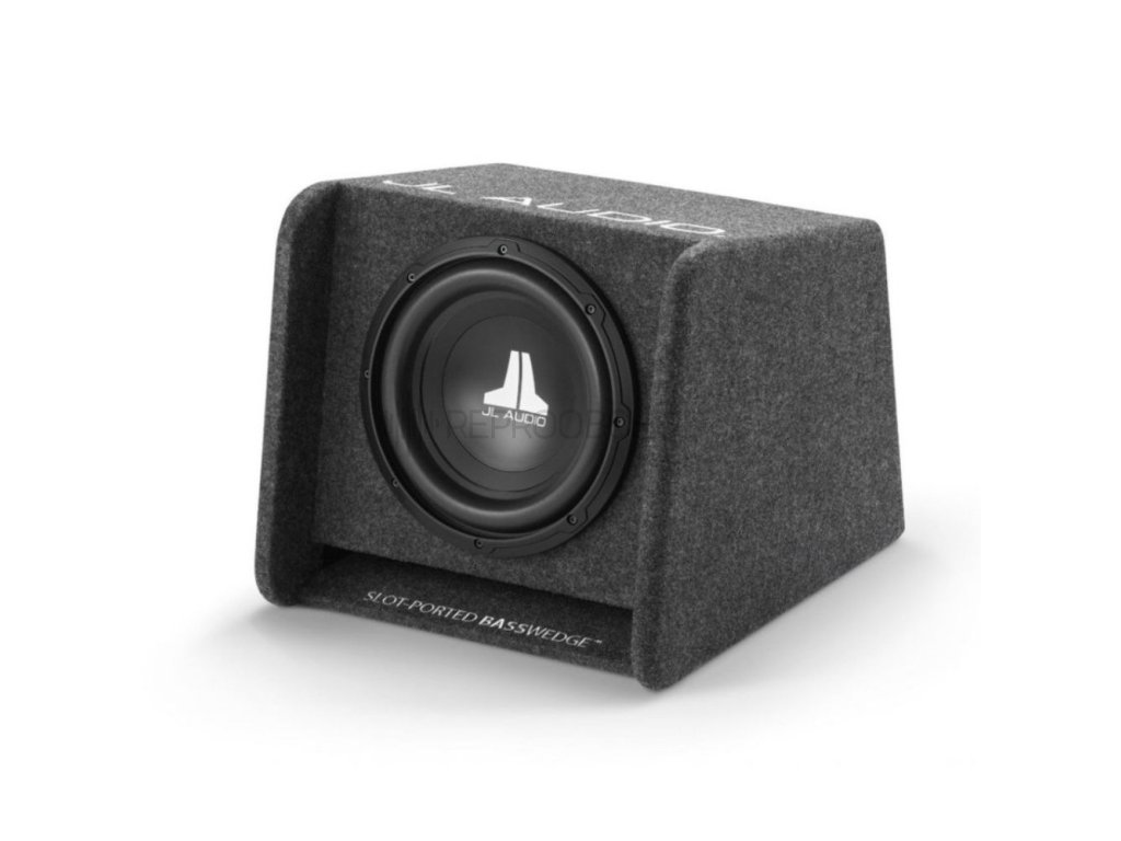 Díky chytrému konstrukčnímu řešení může být box umístěn i směrem dolů, aniž by to ovlivnilo kvalitu zvuku. Ozvučnice je vyrobena z MDF desky řezané na CNC technologií V-Groove, potažena odolným automobilovým kobercem v šedé barvě a doplněna elegantní výšivkou JL Audio.