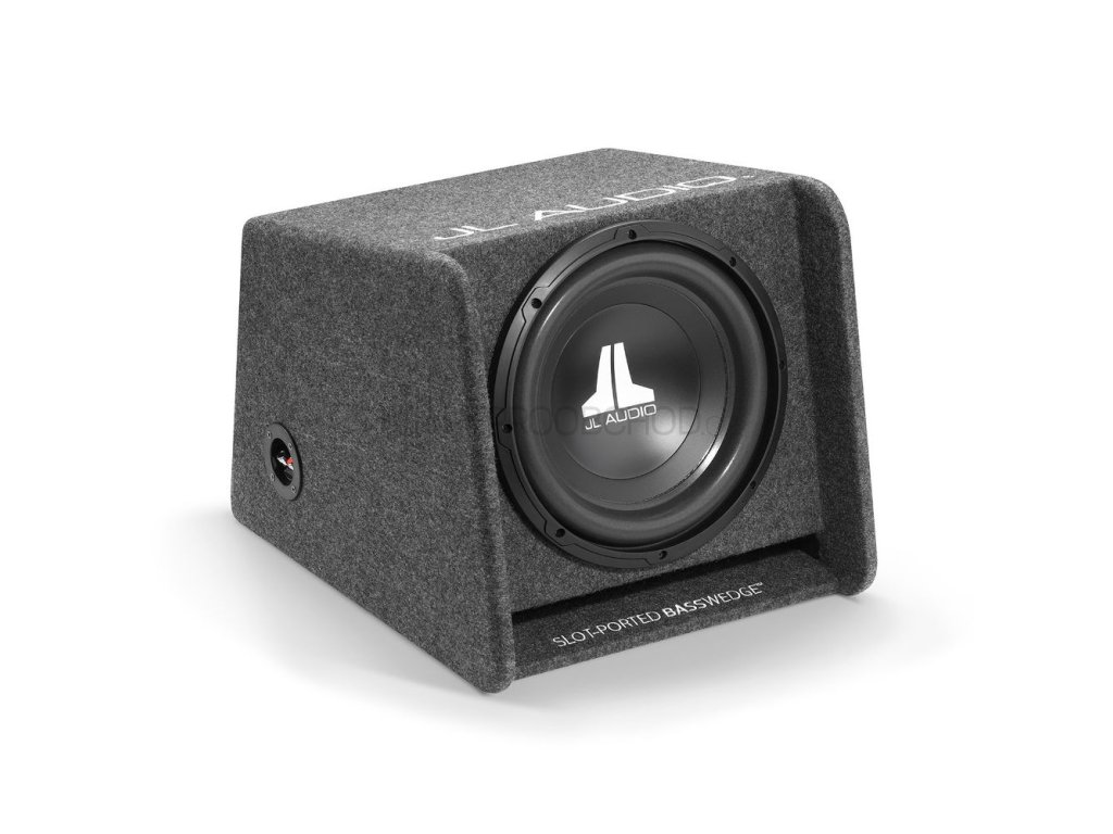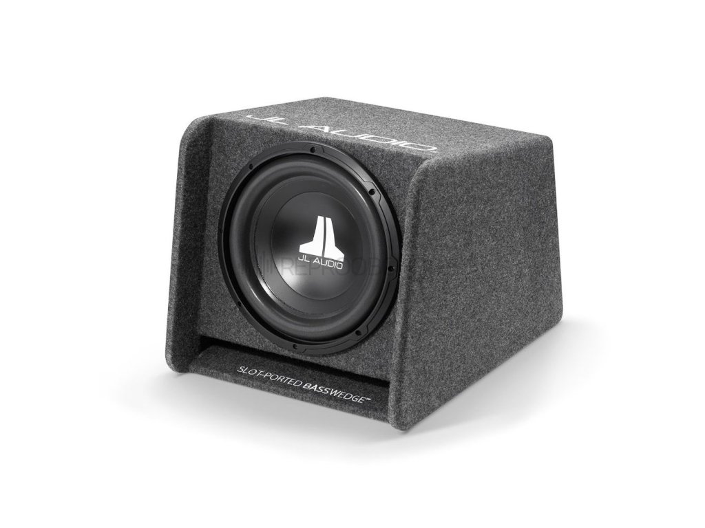 Díky chytrému konstrukčnímu řešení lze subwoofer umístit i směrem dolů, aniž by utrpěla kvalita basů. Rozšířené ústí portu podporuje hladkou odezvu a hluboké tóny bez zkreslení. Celá ozvučnice je potažena odolným automobilovým kobercem v šedé barvě a na horní straně ji zdobí decentní stříbrná výšivka JL Audio.