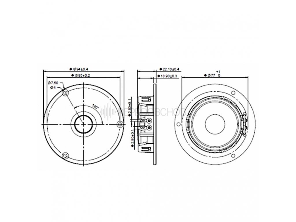 Cenově zajímavý 0,75" výškový reproduktor D19TD-05 od společnosti Tymphany se vyznačuje dobrým rozptylem a vynikajícím výkonem. Membrána je polypropylenová. Hlasová cívka je chlazena ferrofluid kapalinou.