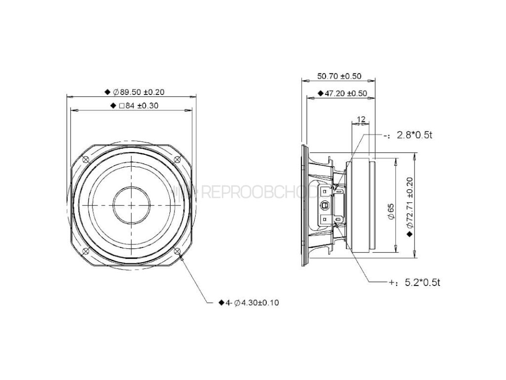 Velikost 3,5" | 4 Ω | 30 W RMS | 90 dB | 100 - 20000 Hz