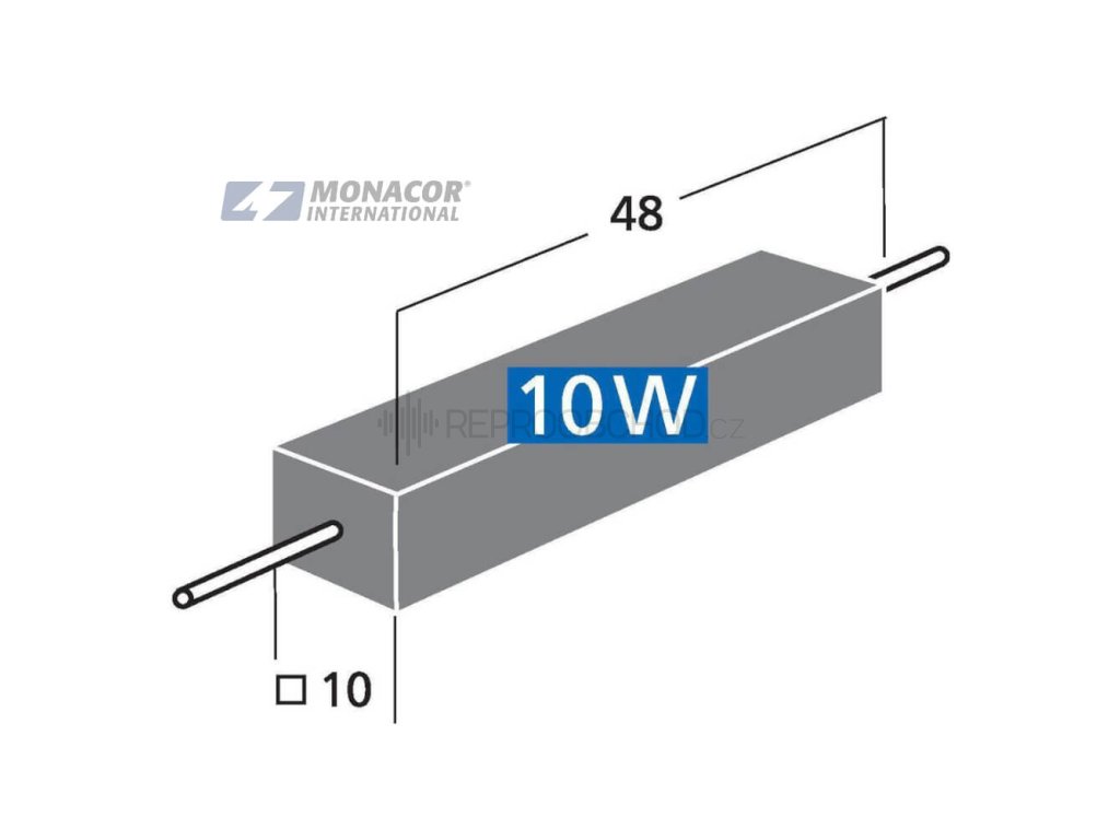 Cementový rezistor MONACOR s označením LSR-68/10 10W vhodný zejména k výhybkám pro PA aplikace a špičkové hi-fi systémy.