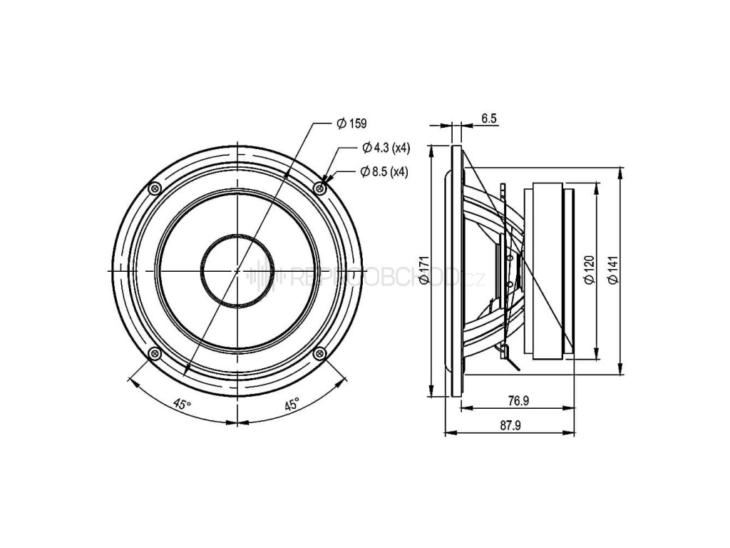 Velikost 6" | 4 Ω | 60 W RMS | 92 dB | 75 - 3600 Hz