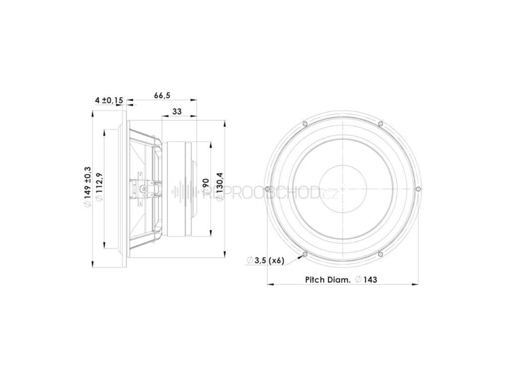 Velikost 6" | 8 Ω | 60 W RMS | 85,5 dB | 32 - 5000 Hz