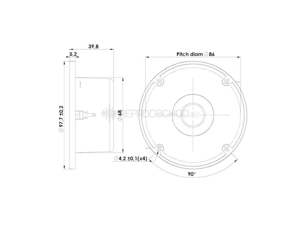 Velikost 0,75" | 8 Ω | 90 W RMS | 89 dB | 4000 - 20000 Hz
