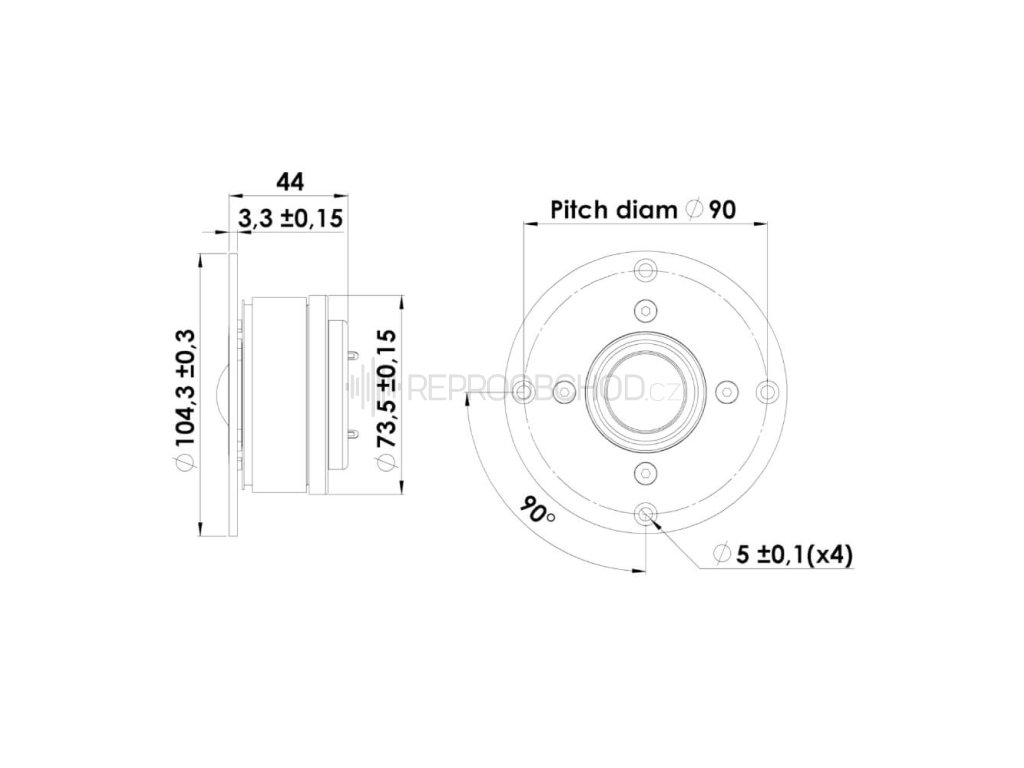 Velikost 1" | 4 Ω | 150 W RMS | 91 dB | 2500 - 25000 Hz