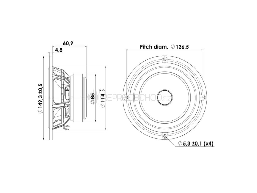 Velikost 5" | 4 Ω | 75 W RMS | 92,4 dB | 150 - 10000 Hz