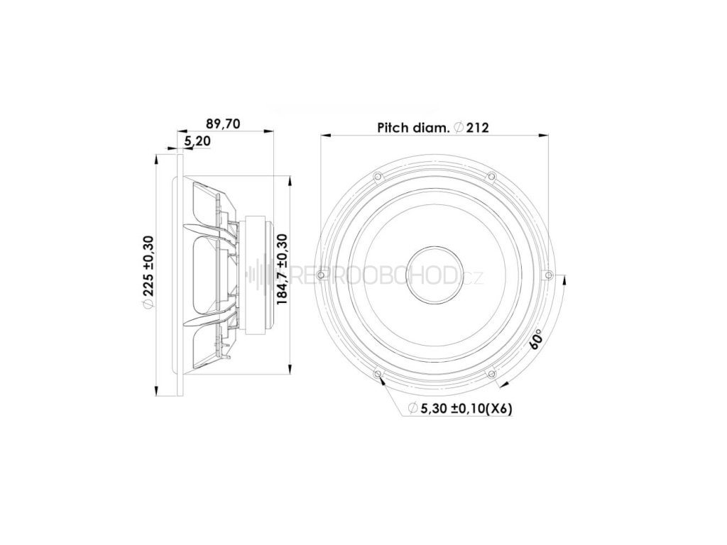Velikost 8" | 4 Ω | 70 W RMS | 92,5 dB | 30 - 5000 Hz