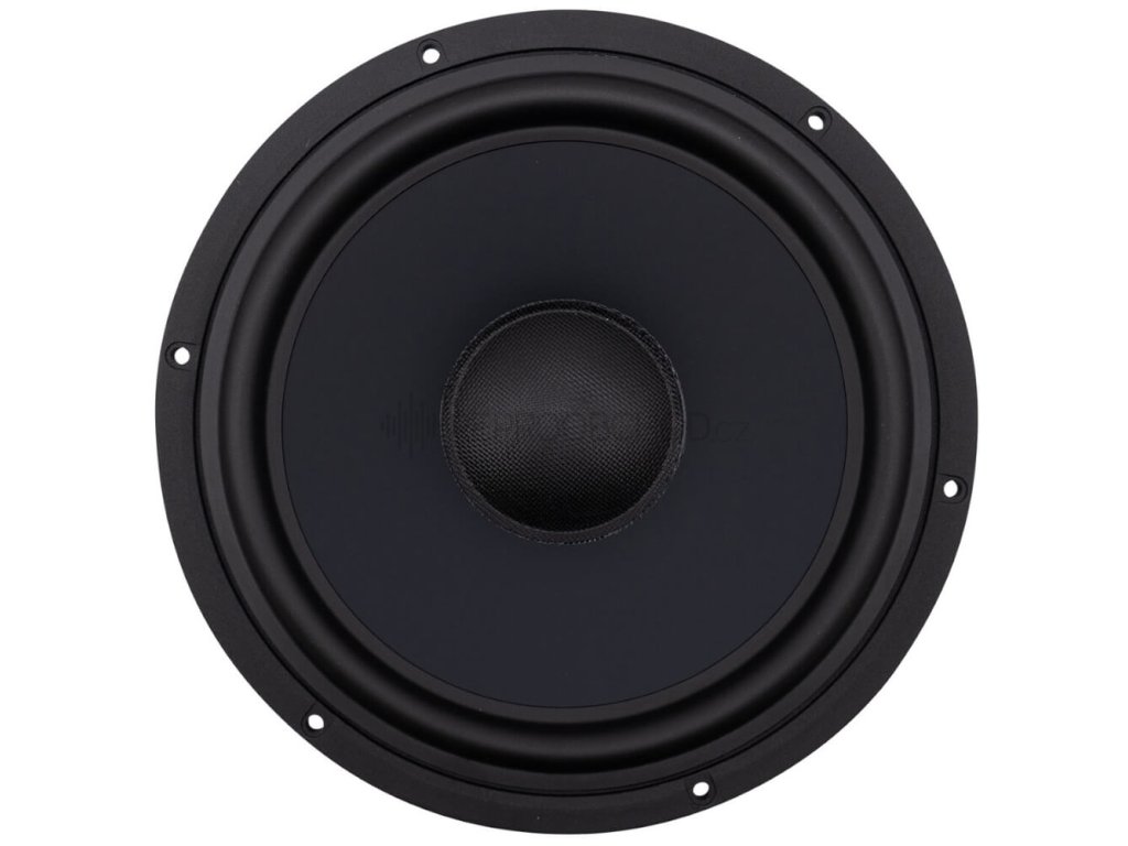 Reproduktorová membrána z tvrdého papírového kompozitu přináší rychlou odezvu a přirozený zvukový charakter. Měkký závěs membrány a optimalizovaný spodní závěs spolupracují na plynulém pohybu bez mechanických artefaktů. Výkonný pohon zajišťuje dostatek energie i při vyšší zátěži a podporuje stabilní reprodukci i při dlouhodobém provozu. Konstrukce reproduktoru zároveň minimalizuje proudění vzduchu, což snižuje nežádoucí šum a zlepšuje celkový poslechový zážitek.