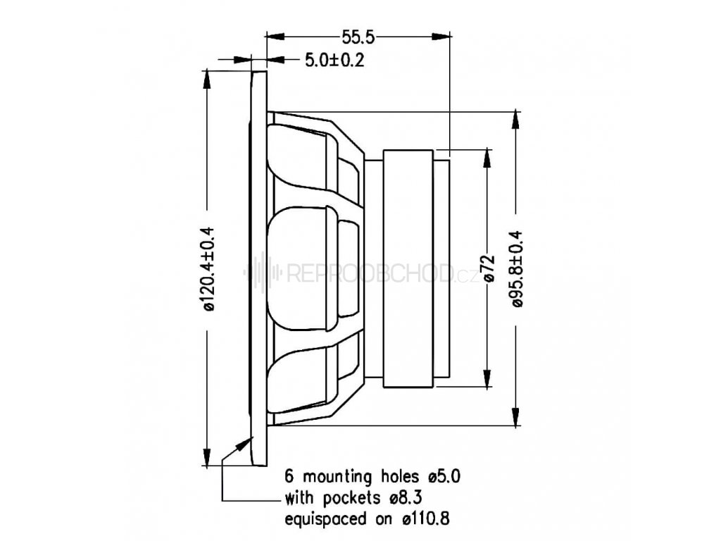 Velikost 4,5" | 8 Ω | 110 W RMS | 86 dB | 400 - 5000 Hz