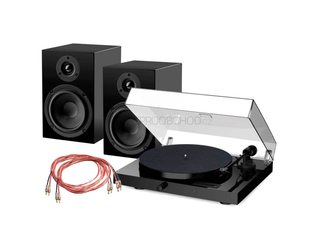 Pár reproduktorů PRO-JECT SPEAKER BOX 5 E + aktivní gramofon PRO-JECT E1 + OFC kabely PRO-JECT CONNECT IT LS-E 2x3m