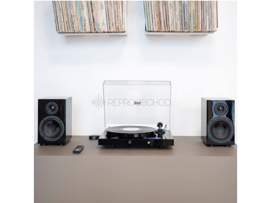 Pro-Ject JUKE BOX E1 je chytré all-in-one řešení, které spojuje gramofon, phono předzesilovač, Bluetooth přijímač a integrovaný zesilovač v jednom elegantním těle. Stačí připojit pár reproduktorů a vznikne kompletní hudební systém připravený k okamžitému přehrávání. Díky plně přednastavenému nastavení z výroby je instalace naprosto jednoduchá – rozbalíte, připojíte a hrajete. JUKE BOX E1 je dostupný v povrchové úpravě s vysokým leskem v barvách černá, bílá a červená nebo v elegantním provedení ořech. Samozřejmostí je i průhledný akrylový protiprachový kryt.