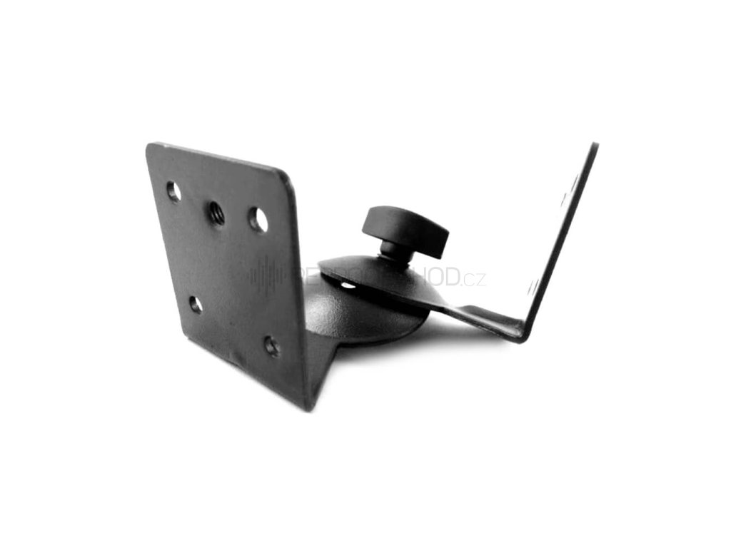 Značkové a stavitelné kovové držáky regálových reprosoustav od české společnosti AQ AUDIO. Držák dovoluje rotaci až o 180 stupňů.