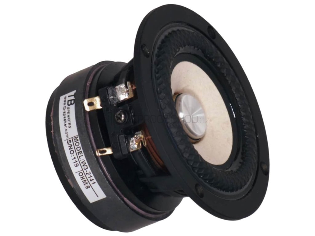 Díky papírové membráně z bambusových vláken, strukturovanému santoprenovému obalu a podvěsnému motoru má 3“ plný rozsah W3-2141 od společnosti Tang Band působivou odezvu od 75 do 20 000 s velmi nízkým zkreslením.