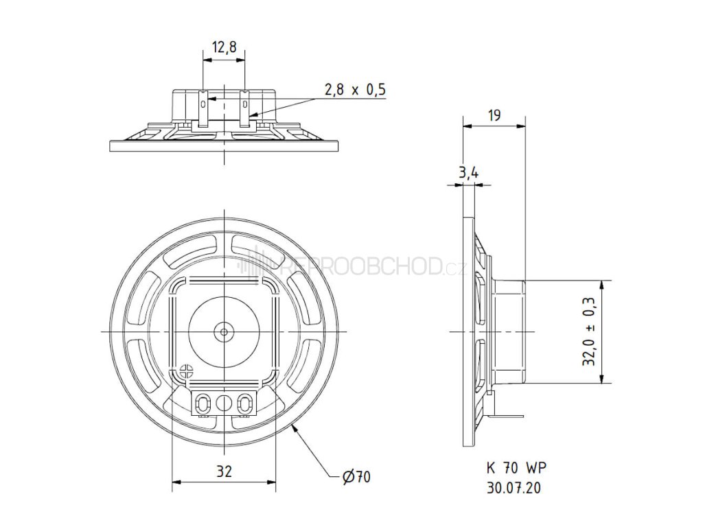 Velikost 2,8" | 8 Ω | 2 W RMS | 84 dB | 200 - 15000 Hz