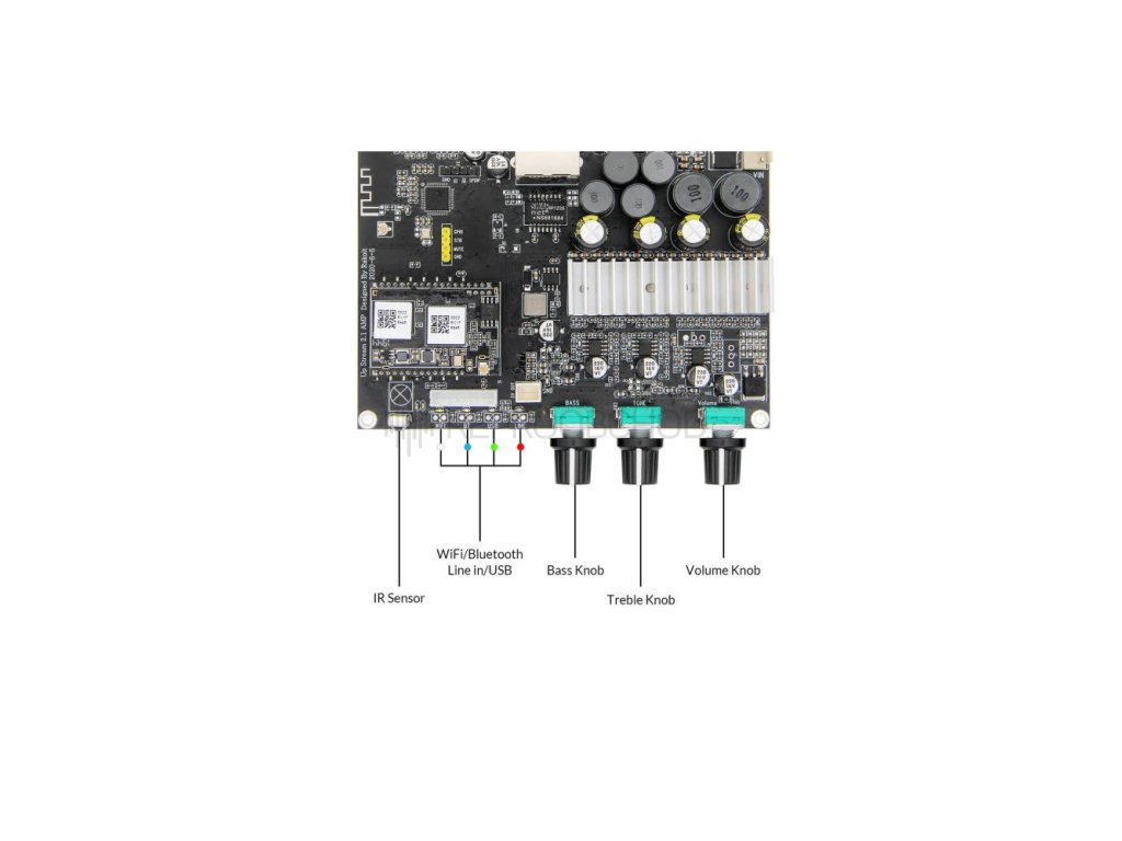 Arylic Up2Stream 2.1 Amp je výkonný bezdrátový zesilovací modul navržený pro domácí audio systémy a DIY projekty, ve kterých je kladen důraz na kvalitní subwooferový výstup a flexibilní bezdrátové ovládání. Kombinuje výkon 2 × 50 W pro stereo kanály a až 100 W pro subwoofer, což umožňuje vytvořit plnohodnotný 2.1 systém s přesným laděním a stabilním přenosem zvuku.