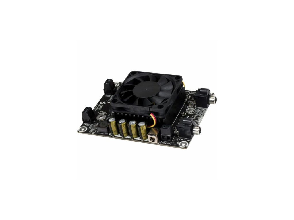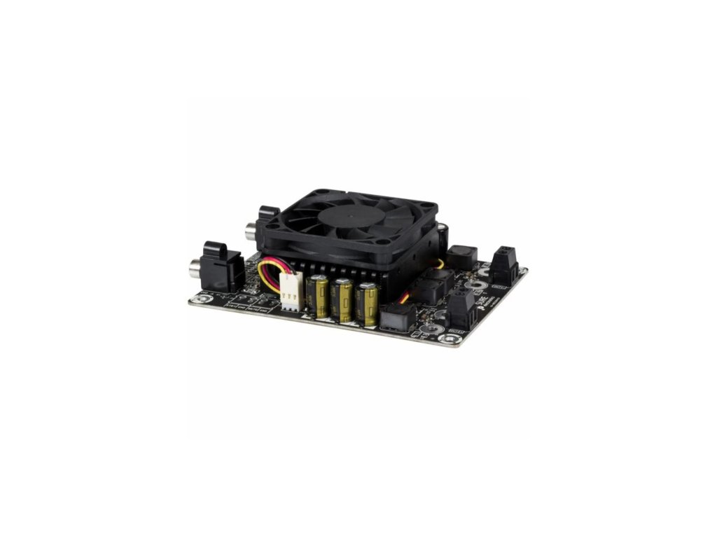 Deska je vybavena vestavěným chladicím ventilátorem a robustním chladičem, které společně zajišťují optimální odvod tepla. Díky tomu se zesilovač nepřehřívá ani při vyšší hlasitosti. Nechybí ani ochrana proti přehřátí a systém potlačení praskání při zapnutí a vypnutí. Kvůli univerzálnímu napájecímu rozsahu 14–27 V DC lze modul snadno integrovat do DIY projektů i komerčních zařízení.