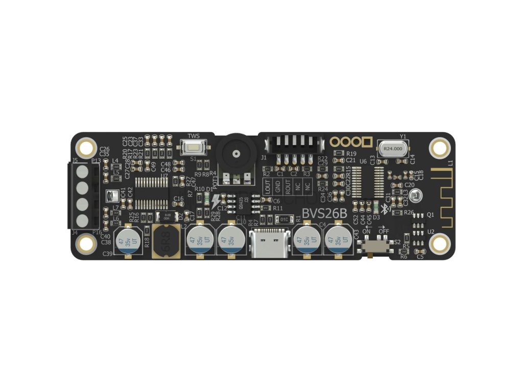 Sure Electronics AA-AB32502 (BVS26B) je kompaktní zesilovací modul s výkonem 2 × 6 W, který umožňuje provoz bateriové audio sestavy s podporou Bluetooth 5.0. Díky integrované Li-ion baterii typu 26650 nabízí dlouhou výdrž a je ideální pro malé přenosné ozvučení nebo vlastní DIY projekty.