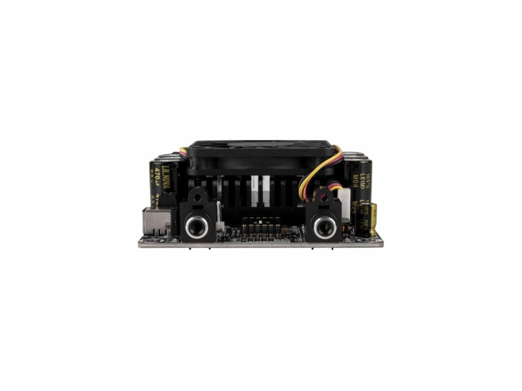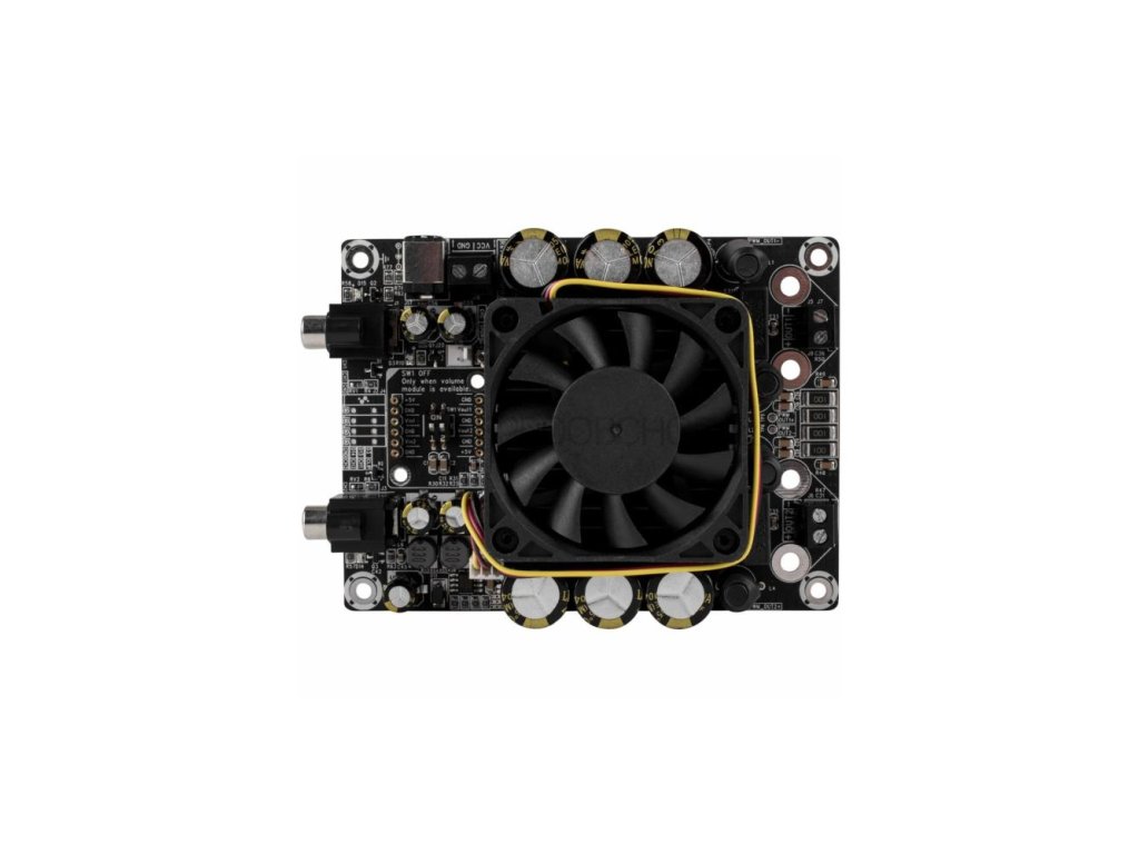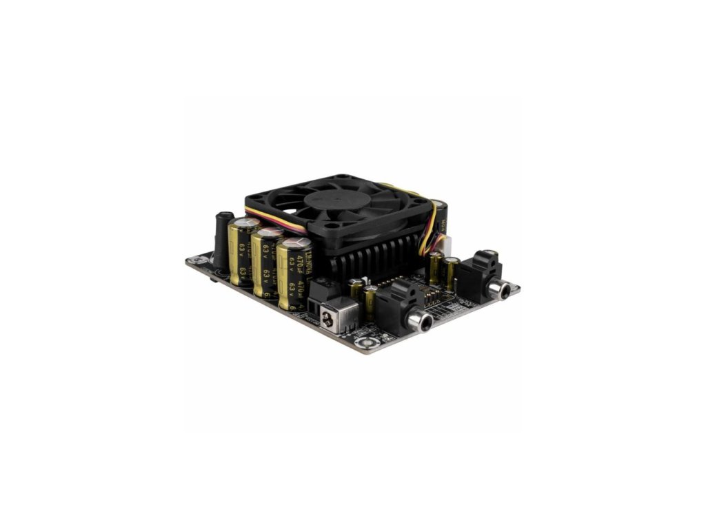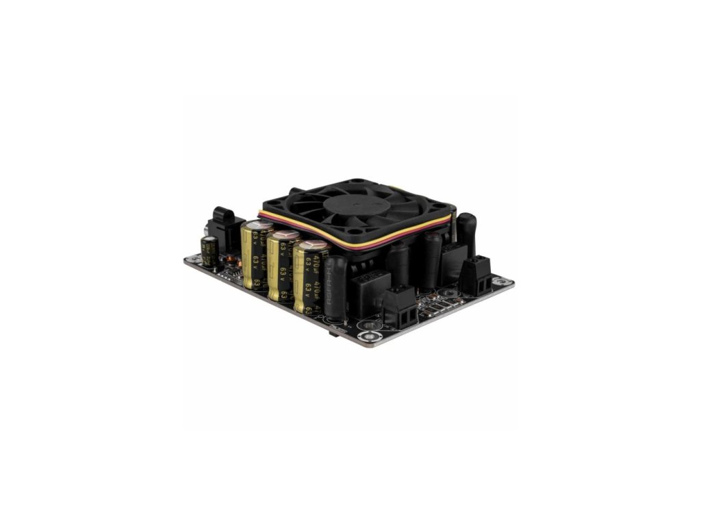 Deska je vybavena integrovaným chladičem a tichým ventilátorem řízeným podle teploty, takže udržuje stabilní chod i při vyšší zátěži. Součástí jsou také pokročilé ochranné obvody pro jistější provoz a delší životnost. Díky RCA vstupům a šroubovým svorkám pro výstupy je připojení jednoduché a rychlé, stejně jako integrace do vlastního projektu.