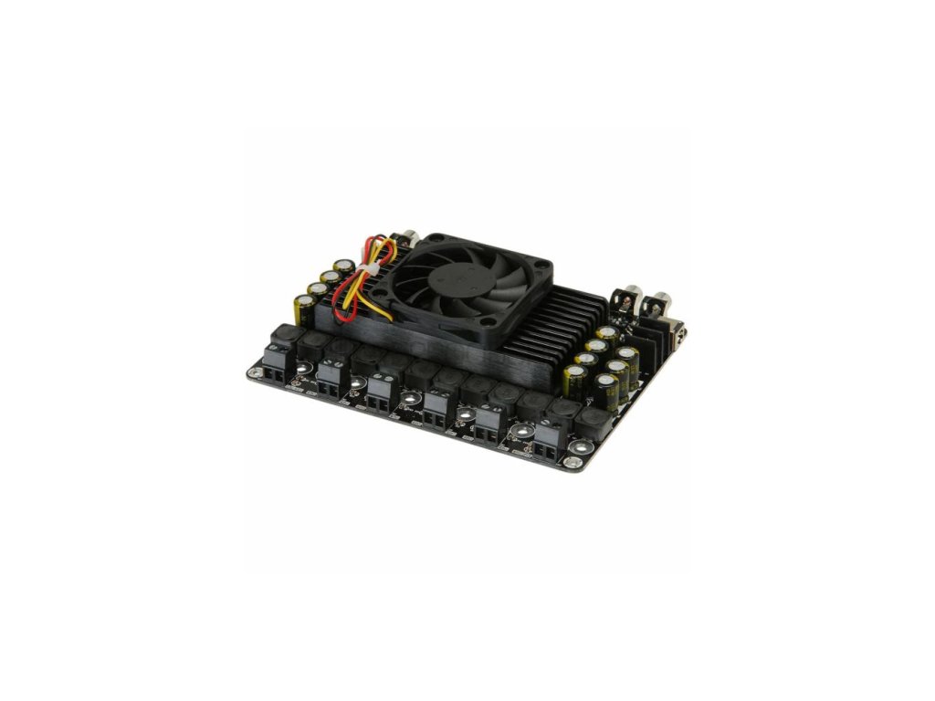 Zesilovač je osazen robustním chladičem s tichým ventilátorem pro efektivní odvod tepla a dlouhodobý stabilní provoz. Nechybí ani pokročilé ochrany – proti přehřátí, přepětí, podpětí a nadproudu. Modul nabízí čtyři pevná nastavení zisku, díky nimž lze snadno upravit výslednou úroveň hlasitosti.